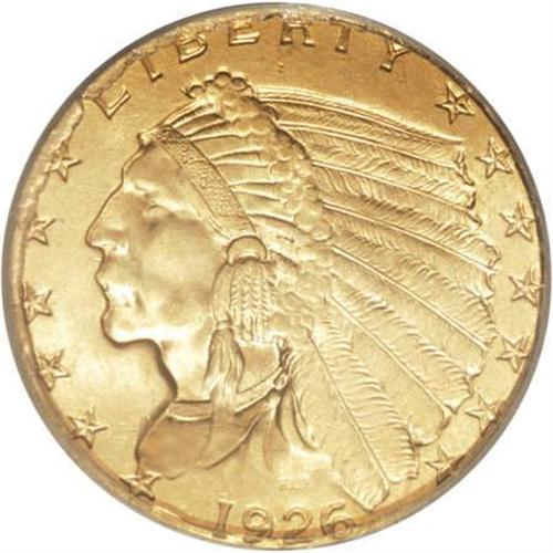 <B>1926 $2 1/2 MS65 PCGS.</B></I> This satiny gold type coin features original khaki-gold toning, and the strike is crisp with only minor blending of detail on the lowest headdress plume. Philadelphia Mint Quarter eagle and eagle production resumed in 1926 after an 11-year gap. Housed in a green label holder.<BR><BR><B>Coin Engraver:</B> Bela Lyon Pratt<BR><BR><b>Shipping:</b> Coins & Currency (<a target="_blank" href="http://www.heritageauctions.com/common/shipping.php">view shipping information</a>)