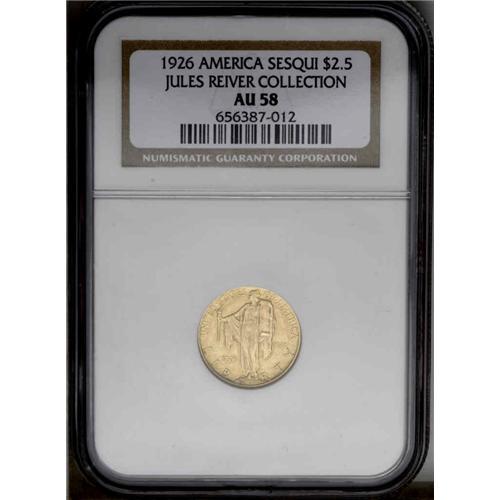 <B>1926<$2 1/2> Sesquicentennial AU58 NGC.</B></I> Deep, rich color with just a slight amount of cabinet friction. Lustrous with good eye appeal. Envelope Included.