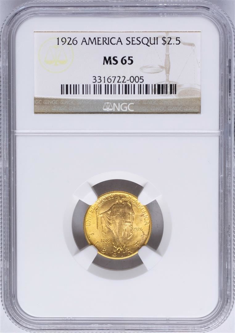 One 1926 $2 1/2 Sesquicentennial Commemorative Gold Coin NGC MS65. NGC Certified.