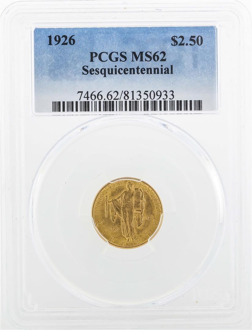 One 1926 $2 1/2 Sesquicentennial Gold Coin PCGS MS62. PCGS Graded.