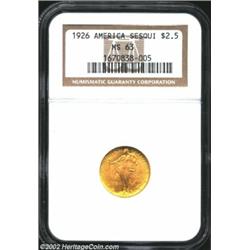 1926 $2 1/2 Sesquicentennial MS63 NGC. Few choice uncirculated examples of this type display the attractive, satiny orange brilliance that this specimen boasts. Important notice: We expect to be auctioning lots at the rate of 200-250 per hour. Sometimes eBay Premier live bid software cannot keep up with that pace, so we strongly recommend that you place a realistic proxy bid now as insurance to avoid disappointment. Also please note that all Heritage/CAA lots purchased through eBay Premier carry a 20% Buyer's Premium. Please make sure you read the Terms and Conditions.