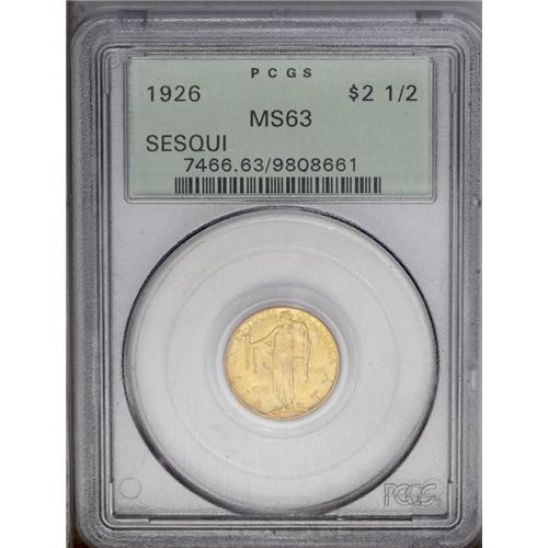 1926 $2 1/2 Sesquicentennial MS63 PCGS. A lustrous pie 1926[$2 1/2] Sesquicentennial MS63 PCGS.