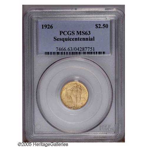1926 $2 1/2 Sesquicentennial MS63 PCGS. This sharply s 1926[$2 1/2] Sesquicentennial MS63 PCGS.
