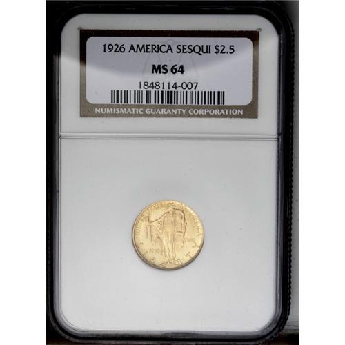 <B>1926<$2 1/2> Sesquicentennial MS64 NGC.</B></I> Shimmering full luster and rich coloration ensure the eye appeal of this near-Gem. Typically well defined and nearly mark-free on both sides.