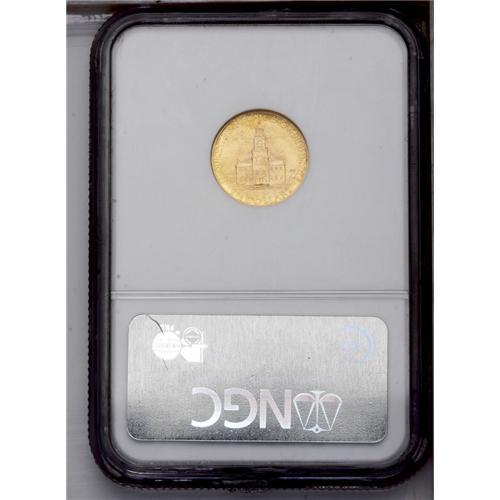 <B>1926<$2 1/2> Sesquicentennial MS64 NGC.</B></I> This near-Gem displays considerable "flash," and features attractive variegated yellow and orange-gold toning. All of the motifs are well brought up, including nice definition on independence Hall. The grade is limited by a few miniscule marks on Liberty's figure.<BR><I>From The Larj Collection.</B></I>