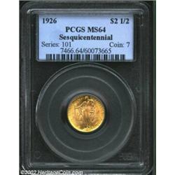 1926 $2 1/2 Sesquicentennial MS64 PCGS. Crisp golden color and a bold strike compliment the lustrous