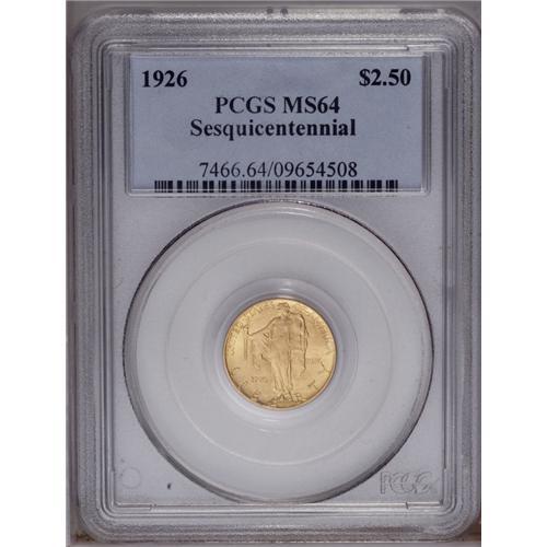 1926 $2 1/2 Sesquicentennial MS64 PCGS. Satiny and lus 1926[$2 1/2] Sesquicentennial MS64 PCGS.