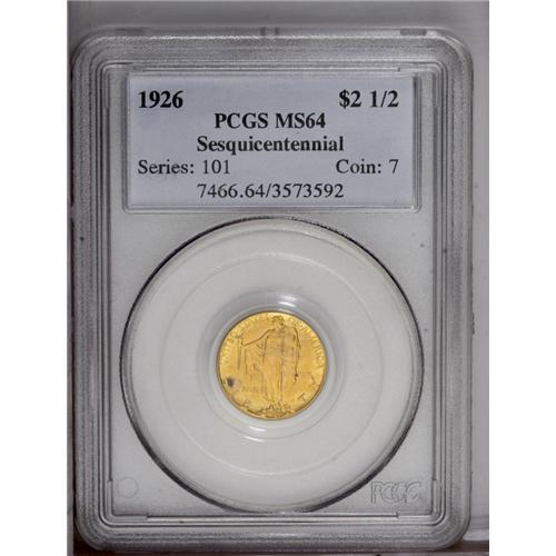 1926 $2 1/2 Sesquicentennial MS64 PCGS. Variegated ora 1926[$2 1/2] Sesquicentennial MS64 PCGS.