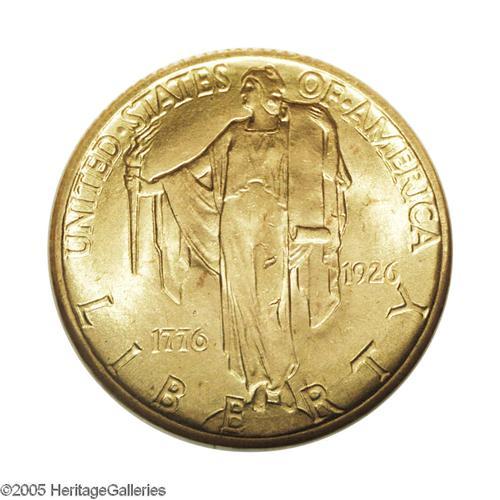 <B>1926<$2 1/2> Sesquicentennial MS65 NGC.</B></I> The hallmarks of this attractive Gem are its fulsome luster and rich orange-gold color. A few alloy spots and a couple of tiny contact marks, on the obverse, are the only detracting features on this lovely gold commemorative.