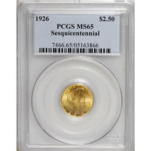 <B>1926 $2 1/2 Sesquicentennial MS65 PCGS.</B></I> A sharply struck and lustrous Gem that has rich honey-gold color and attractive surfaces. A few small marks are noted on Liberty's thigh and knee that limit the grade. The Sesquicentennial was the final gold commemorative type prior to the 1984 Los Angeles Olympics.<BR><BR><b>Shipping:</b> Coins & Currency (<a target="_blank" href="http://www.heritageauctions.com/common/shipping.php">view shipping information</a>)