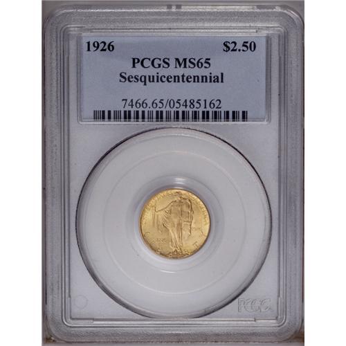 1926 $2 1/2 Sesquicentennial MS65 PCGS. Fully lustrous 1926[$2 1/2] Sesquicentennial MS65 PCGS.
