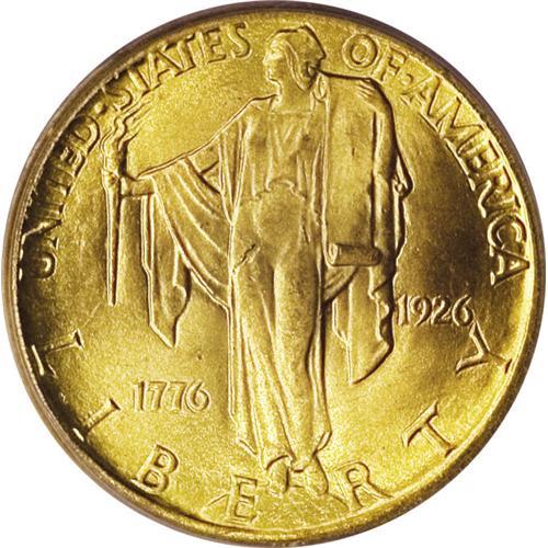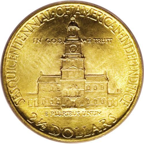 <B>1926 $2 1/2 Sesquicentennial MS65 PCGS.</B></I> The striking details are slightly soft on each side, as frequently seen on this low-relief issue, but there are essentially no surface impairments. The orange-gold luster radiates from somewhat mattelike, fine-grained surfaces. Independence Hall, depicted on the coin's reverse, still stands today in modern Philadelphia, on Chestnut Street between Fifth and Sixth streets.<BR><BR><b>Shipping:</b> Coins & Currency (<a target="_blank" href="http://www.heritageauctions.com/common/shipping.php">view shipping information</a>)