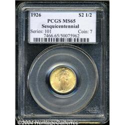 <table><tbody><tr><td><table> <TR><TD width="100%"><TABLE cellSpacing=1 cellPadding=3 width="100%" border=0><TBODY><TR><TD width="100%" bgColor=#79735c><FONT face=arial color=#ffffff size=3><B>Description</B> </FONT></TD></TR><TR><TD width="100%" bgColor=#ffffff><FONT face=arial size=2><B>1926 $2 1/2 Sesquicentennial MS65 PCGS.</B></I> This is an exquisite and uncommonly well preserved representative of the type with rich yellow-gold color throughout. The full mint luster swirls peacefully around both sides in the virtual absence of distractions. Boldly, if not sharply defined over all elements of the design. </FONT></TD></TR></TBODY></TABLE></TD></TR></TBODY></TABLE><BR><A name=PricesRealized></A><TABLE cellSpacing=0 cellPadding=0 width="100%" bgColor=#000000 border=0><TBODY><TR><TD width="100%"><TABLE cellSpacing=1 cellPadding=3 width="100%" border=0><TBODY><TR><TD width="100%" bgColor=#79735c><A name=PR><FONT face=arial color=#ffffff size=3><B>Previous Prices from Heritage Auctions</B> </FONT></A></TD></TR><TR><TD bgColor=#f6f6ed><TABLE cellSpacing=0 cellPadding=0 width="100%" border=1><TBODY><TR><TD align=middle width="33%"><B>Date</B></TD><TD align=middle width="33%"><B>Service</B></TD><TD align=middle width="33%"><B>Price</B></TD></TR><TR bgColor=whitesmoke><TD width="33%"><B>11/18/2003</B></TD><TD width="33%">PCGS</TD><TD width="33%">$2,645.00</TD></TR><TR bgColor=whitesmoke><TD width="33%"><B>10/07/2003</B></TD><TD width="33%">PCGS</TD><TD width="33%">$2,645.00</TD></TR><TR bgColor=whitesmoke><TD width="33%"><B>09/30/2003</B></TD><TD width="33%">PCGS</TD><TD width="33%">$2,612.80</TD></TR><TR bgColor=whitesmoke><TD width="33%"><B>07/15/2003</B></TD><TD width="33%">NGC</TD><TD width="33%">$2,875.00</TD></TR><TR bgColor=whitesmoke><TD width="33%"><B>06/24/2003</B></TD><TD width="33%">PCGS</TD><TD width="33%">$2,946.30</TD></TR><TR bgColor=whitesmoke><TD width="33%"><B>06/24/2003</B></TD><TD width="33%">PCGS</TD><TD width="33%">$2,946.30</TD></TR><TR bgColor=whitesmoke><TD width="33%"><B>05/13/2003</B></TD><TD width="33%">PCGS</TD><TD width="33%">$3,183.20</TD></TR><TR bgColor=whitesmoke><TD width="33%"><B>01/07/2004</B></TD><TD width="33%">PCGS</TD><TD width="33%">$2,886.50</TD></TR><TR bgColor=whitesmoke><TD width="33%"><B>01/07/2004</B></TD><TD width="33%">PCGS</TD><TD width="33%">$2,886.50</TD></TR><TR bgColor=whitesmoke><TD width="33%"><B>05/03/2003</B></TD><TD width="33%">PCGS</TD><TD width="33%">$3,105.00</TD></TR><TR bgColor=whitesmoke><TD width="33%"><B>03/23/2003</B></TD><TD width="33%">PCGS</TD><TD width="33%">$3,220.00</TD></TR><TR bgColor=whitesmoke><TD width="33%"><B>03/01/2003</B></TD><TD width="33%">PCGS</TD><TD width="33%">$3,220.00</TD></TR><TR bgColor=whitesmoke><TD width="33%"><B>07/30/2002</B></TD><TD width="33%">PCGS</TD><TD width="33%">$5,980.00</TD></TR><TR bgColor=whitesmoke><TD width="33%"><B>04/27/2002</B></TD><TD width="33%">NGC</TD><TD width="33%">$2,760.00</TD></TR><TR bgColor=whitesmoke><TD width="33%"><B>01/12/2002</B></TD><TD width="33%">PCGS</TD><TD width="33%">$4,140.00</TD></TR><TR bgColor=whitesmoke><TD width="33%"><B>01/12/2002</B></TD><TD width="33%">PCGS</TD><TD width="33%">$2,932.50</TD></TR><TR bgColor=whitesmoke><TD width="33%"><B>08/08/2001</B></TD><TD width="33%">PCGS</TD><TD width="33%">$4,140.00</TD></TR><TR bgColor=whitesmoke><TD width="33%"><B>08/08/2001</B></TD><TD width="33%">PCGS</TD><TD width="33%">$3,105.00</TD></TR><TR bgColor=whitesmoke><TD width="33%"><B>02/23/2001</B></TD><TD width="33%">PCGS</TD><TD width="33%">$3,047.50</TD></TR><TR bgColor=whitesmoke><TD width="33%"><B>02/23/2001</B></TD><TD width="33%">PCGS</TD><TD width="33%">$3,105.00</TD></TR><TR bgColor=whitesmoke><TD width="33%"><B>10/06/2000</B></TD><TD width="33%">PCGS</TD><TD width="33%">$3,105.00</TD></TR><TR bgColor=whitesmoke><TD width="33%"><B>08/07/2000</B></TD><TD width="33%">PCGS</TD><TD width="33%">$2,760.00</TD></TR><TR bgColor=whitesmoke><TD width="33%"><B>05/05/2000</B></TD><TD width="33%">PCGS</TD><TD width="33%">$2,530.00</TD></TR><TR bgColor=whitesmoke><TD width="33%"><B>03/02/2000</B></TD><TD width="33%">PCGS</TD><TD width="33%">$2,587.50</TD></TR><TR bgColor=whitesmoke><TD width="33%"><B>02/11/2000</B></TD><TD width="33%">NGC</TD><TD width="33%">$2,817.50</TD></TR><TR bgColor=whitesmoke><TD width="33%"><B>02/11/2000</B></TD><TD width="33%">PCGS</TD><TD width="33%">$3,335.00</TD></TR><TR bgColor=whitesmoke><TD width="33%"><B>02/11/2000</B></TD><TD width="33%">PCGS</TD><TD width="33%">$2,760.00</TD></TR><TR bgColor=whitesmoke><TD width="33%"><B>11/18/1999</B></TD><TD width="33%">PCGS</TD><TD width="33%">$2,760.00</TD></TR><TR bgColor=whitesmoke><TD width="33%"><B>08/13/1999</B></TD><TD width="33%">PCGS</TD><TD width="33%">$4,715.00</TD></TR><TR bgColor=whitesmoke><TD width="33%"><B>03/13/1999</B></TD><TD width="33%">NGC</TD><TD width="33%">$2,185.00</TD></TR><TR bgColor=whitesmoke><TD width="33%"><B>02/12/1999</B></TD><TD width="33%">NGC</TD><TD width="33%">$2,070.00</TD></TR><TR bgColor=whitesmoke><TD width="33%"><B>01/08/1999</B></TD><TD width="33%">PCGS</TD><TD width="33%">$2,300.00</TD></TR><TR bgColor=whitesmoke><TD width="33%"><B>09/26/1998</B></TD><TD width="33%">NGC</TD><TD width="33%">$3,220.00</TD></TR><TR bgColor=whitesmoke><TD width="33%"><B>08/07/1998</B></TD><TD width="33%">NGC</TD><TD width="33%">$2,875.00</TD></TR><TR bgColor=whitesmoke><TD width="33%"><B>06/06/1998</B></TD><TD width="33%">PCGS</TD><TD width="33%">$2,645.00</TD></TR><TR bgColor=whitesmoke><TD width="33%"><B>01/10/1998</B></TD><TD width="33%">PCGS</TD><TD width="33%">$2,990.00</TD></TR><TR bgColor=whitesmoke><TD width="33%"><B>01/10/1998</B></TD><TD width="33%">NGC</TD><TD width="33%">$2,300.00</TD></TR><TR bgColor=whitesmoke><TD width="33%"><B>01/10/1998</B></TD><TD width="33%">PCGS</TD><TD width="33%">$2,645.00</TD></TR><TR bgColor=whitesmoke><TD width="33%"><B>06/06/1997</B></TD><TD width="33%">PCGS</TD><TD width="33%">$2,875.00</TD></TR><TR bgColor=whitesmoke><TD w