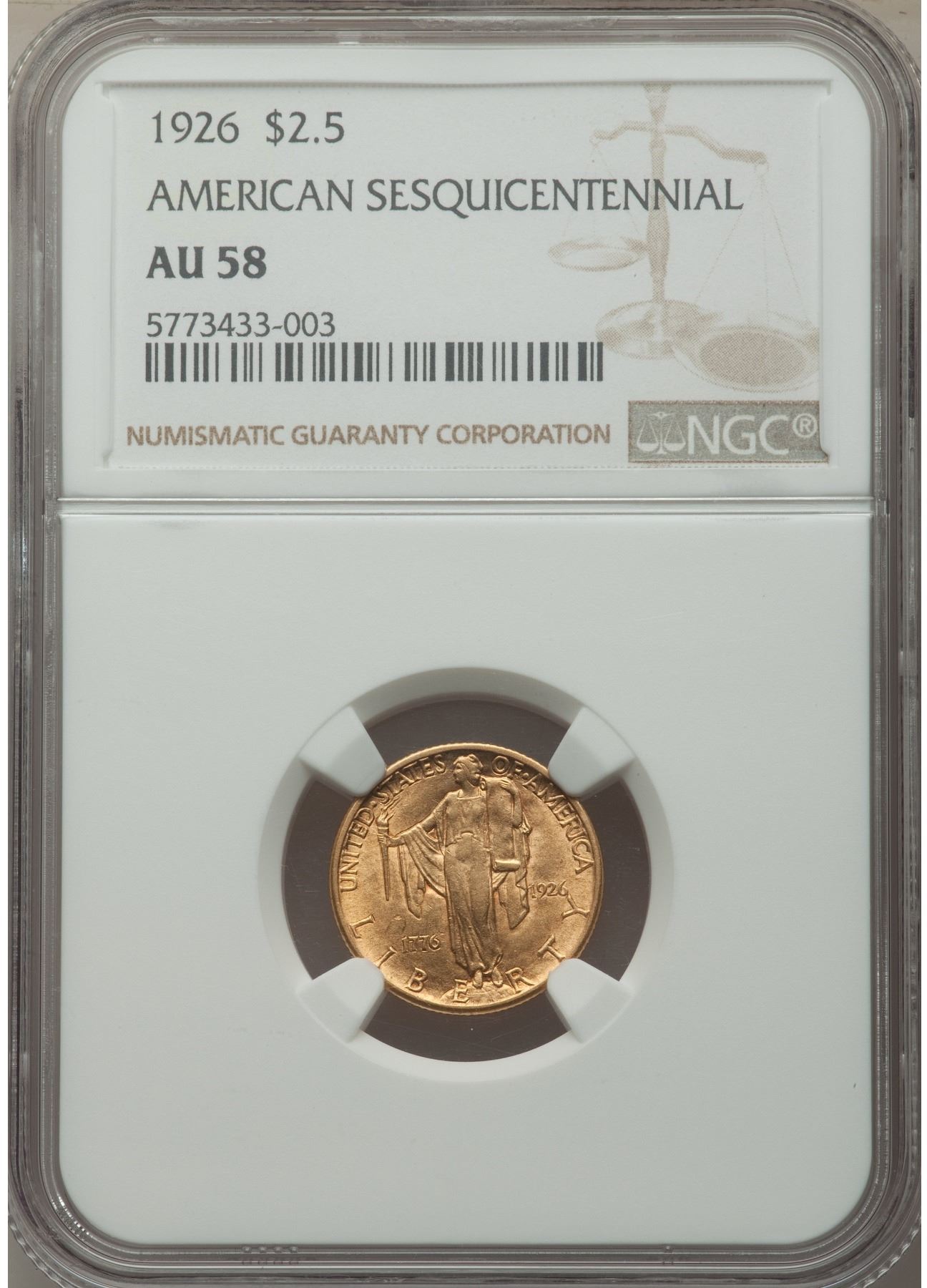 One 1926 $2.5 American Sesquicentennial Gold Coin NGC AU58.