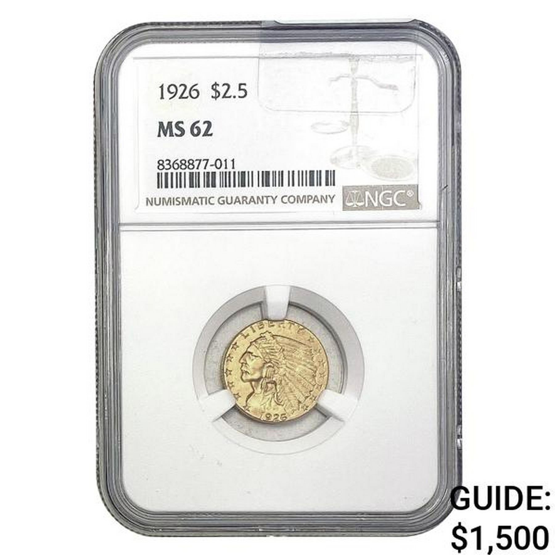 1926 $2.5 Indian Head Gold NGC MS62