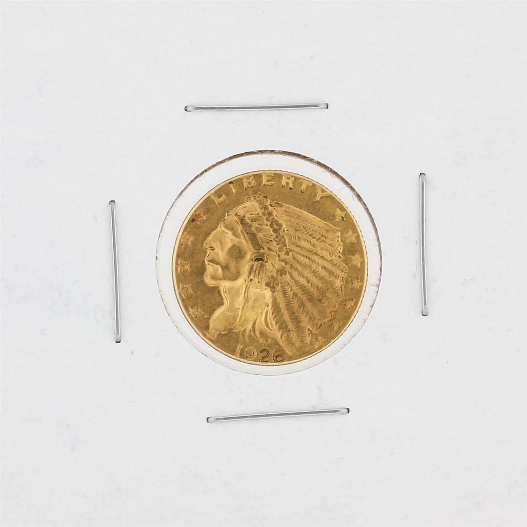 One 1926 $2.50 CU Indian Head Quarter Eagle Coin.