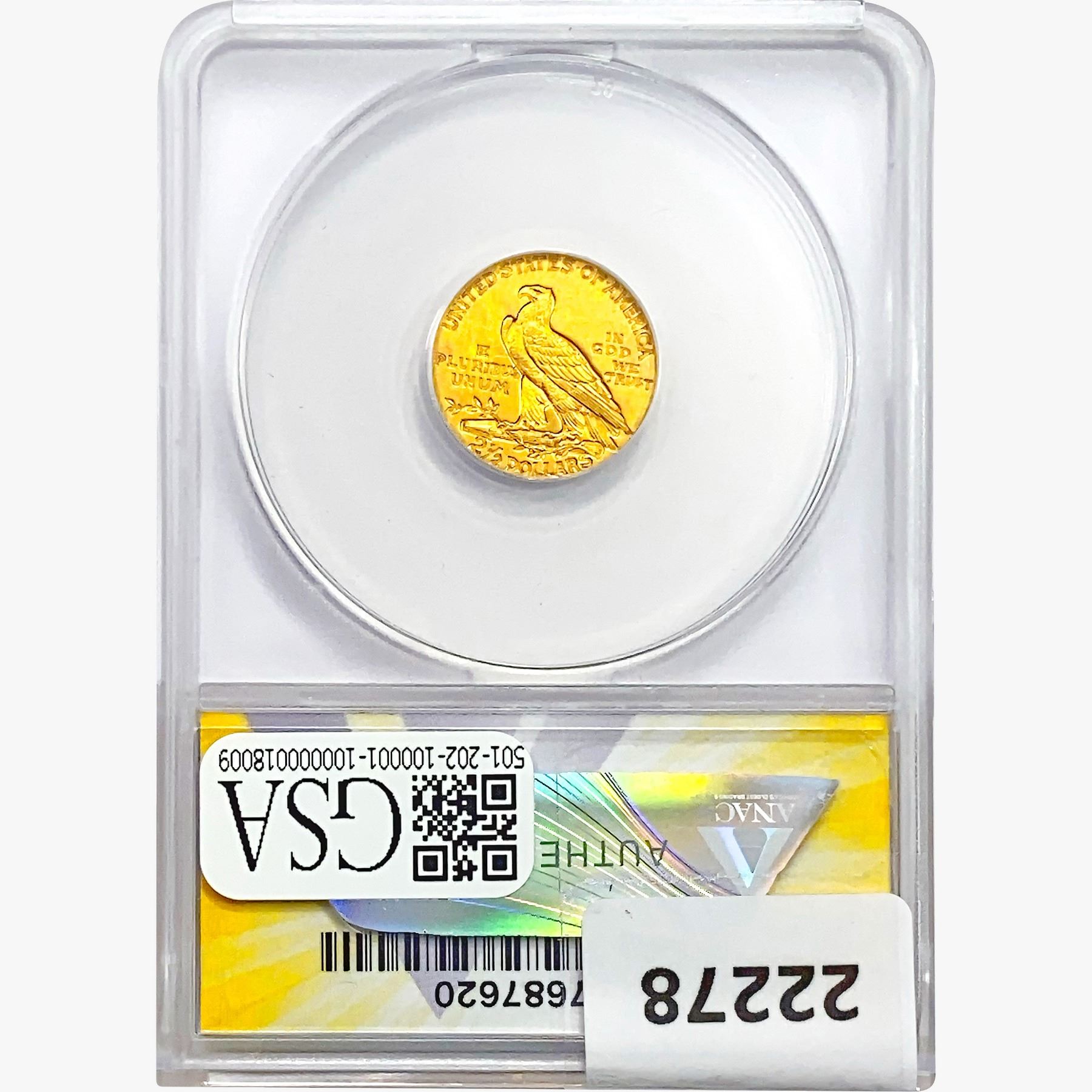 e. Coins sold referencing a third-party grading service are sold “AS IS” without any express or implied warranty, except for a guarantee by GSA that they are genuine. Removal or alteration of the holder, voids all of Bidder’s claims concerning that Product. Certain warranties may be available from the grading services and Bidders are referred to them for further details: Numismatic Guaranty Corporation (NGC), PO Box 4776, Sarasota, FL 34230, www.ngccoin.com/services/writtenguarantee.asp; Professional Coin Grading Services (PCGS), PO Box 9458, Newport Beach, CA 92658, www.pcgs.com/guarantee.html; ANACS, 6555 S. Kenton St., Ste. 303, Englewood, CO 80111; and Independent Coin Grading Co. (ICG), 7901 East Bellview, Ave., Suite 50, Englewood, CO 80111.