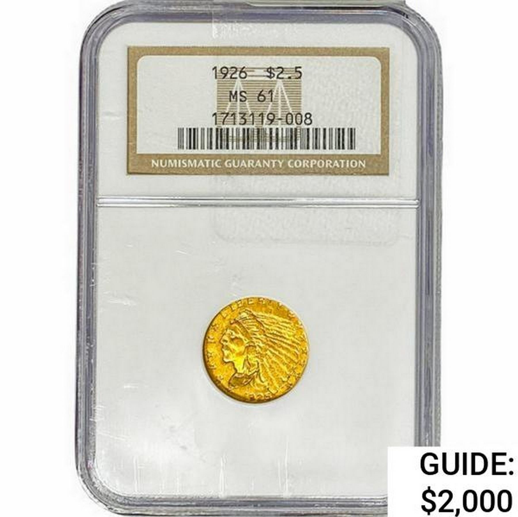 1926 $2.50 Gold Quarter Eagle NGC MS61