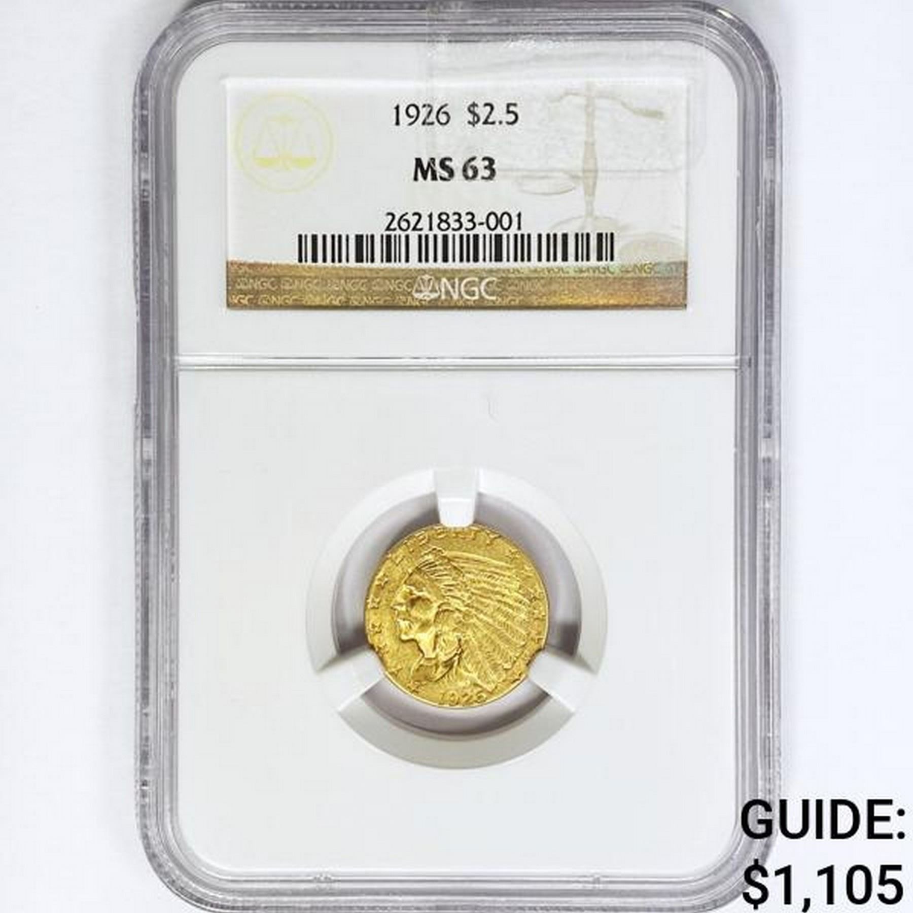 1926 $2.50 Gold Quarter Eagle NGC MS63