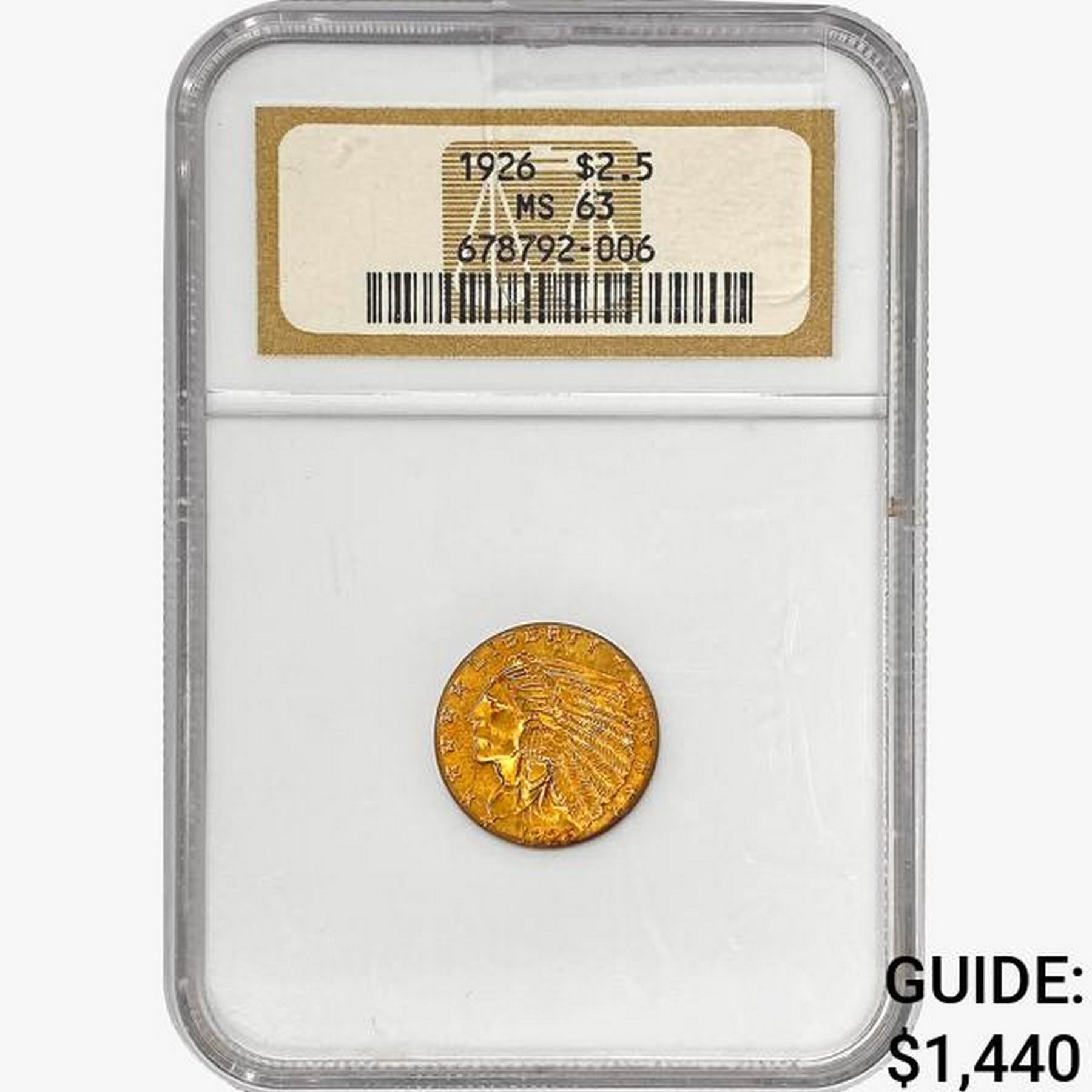 1926 $2.50 Gold Quarter Eagle NGC MS63