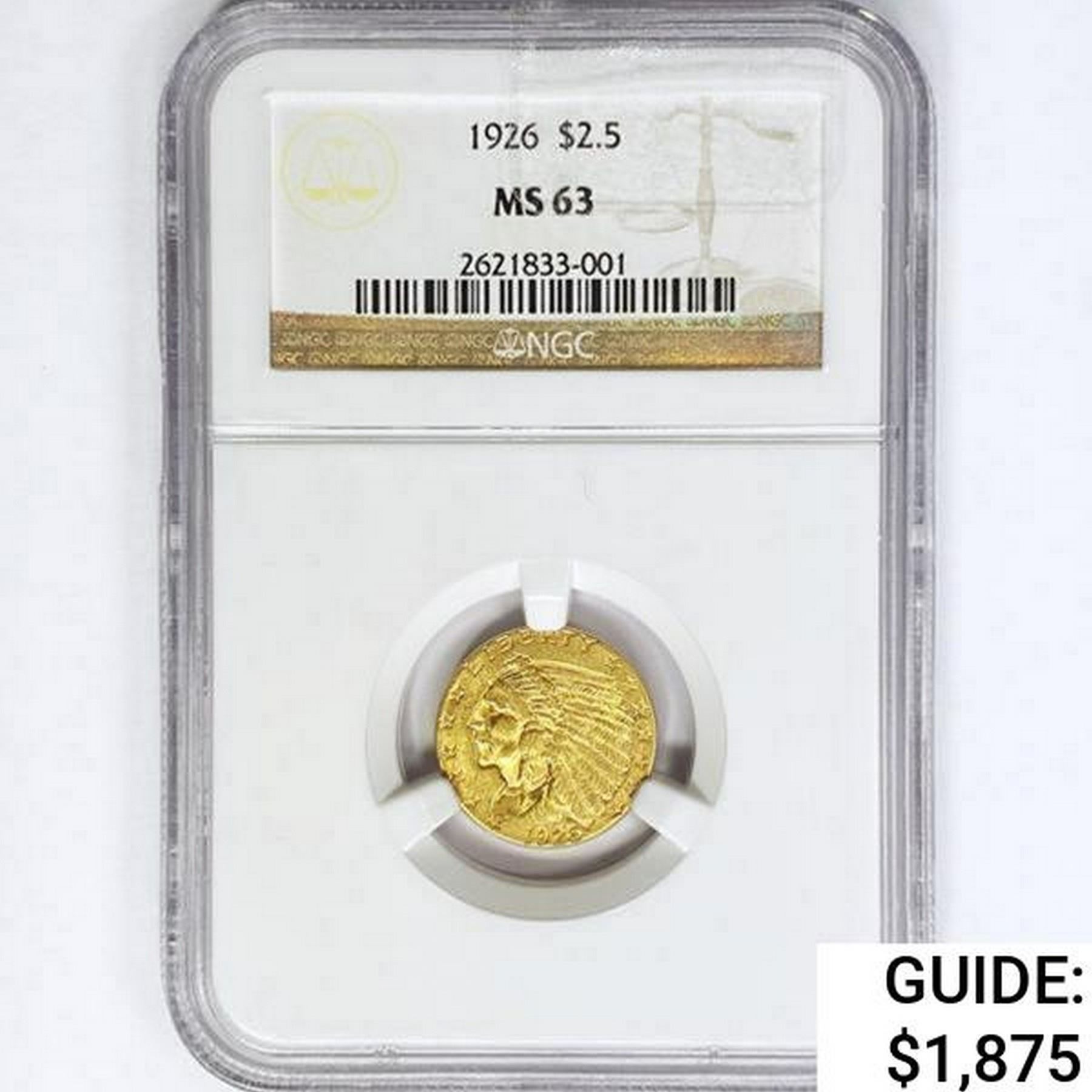 1926 $2.50 Gold Quarter Eagle NGC MS63