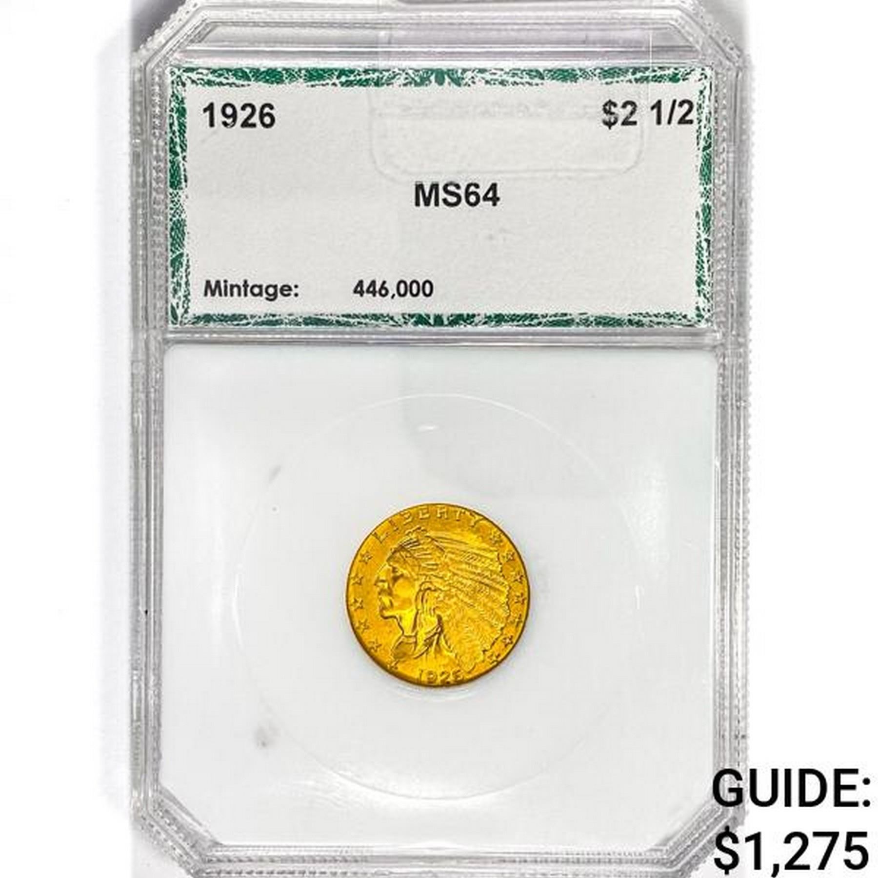 1926 $2.50 Gold Quarter Eagle PCI MS64