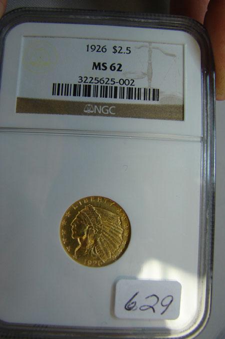 1926 $2.50 Indian Head Gold Coin NGC MS62