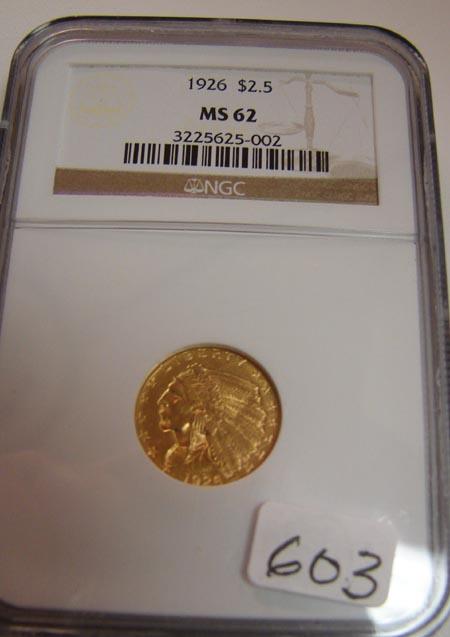 1926 $2.50 Indian Head Gold Coin NGC MS62