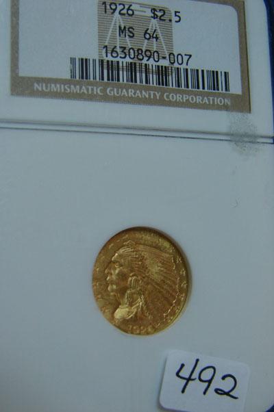 1926 $2.50 Indian Head Gold Coin NGC MS64