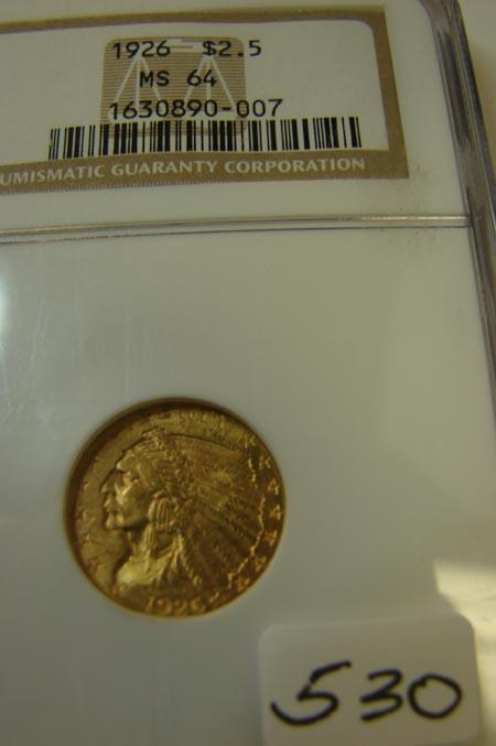 1926 $2.50 Indian Head Gold Coin NGC MS64