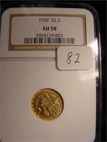 1926 $2.50 Indian Head Gold Coin NGC AU 58