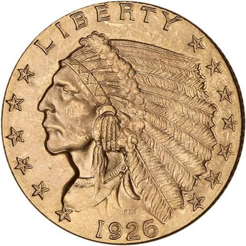 <b>1926 $2.50 Indian. NGC graded MS64.</b> Brilliant fresh gold color still burns from the surface of this appealing undipped coin. Deficiency isn't in the cards when it comes to this coin's detail, either; in fact, outstanding is the word to describe the striking detail on Independence Hall. The spray of sun rays shining behind the building has a unique aspect to it seen only on this design <b>(PCGS # 7950)</b> <i>