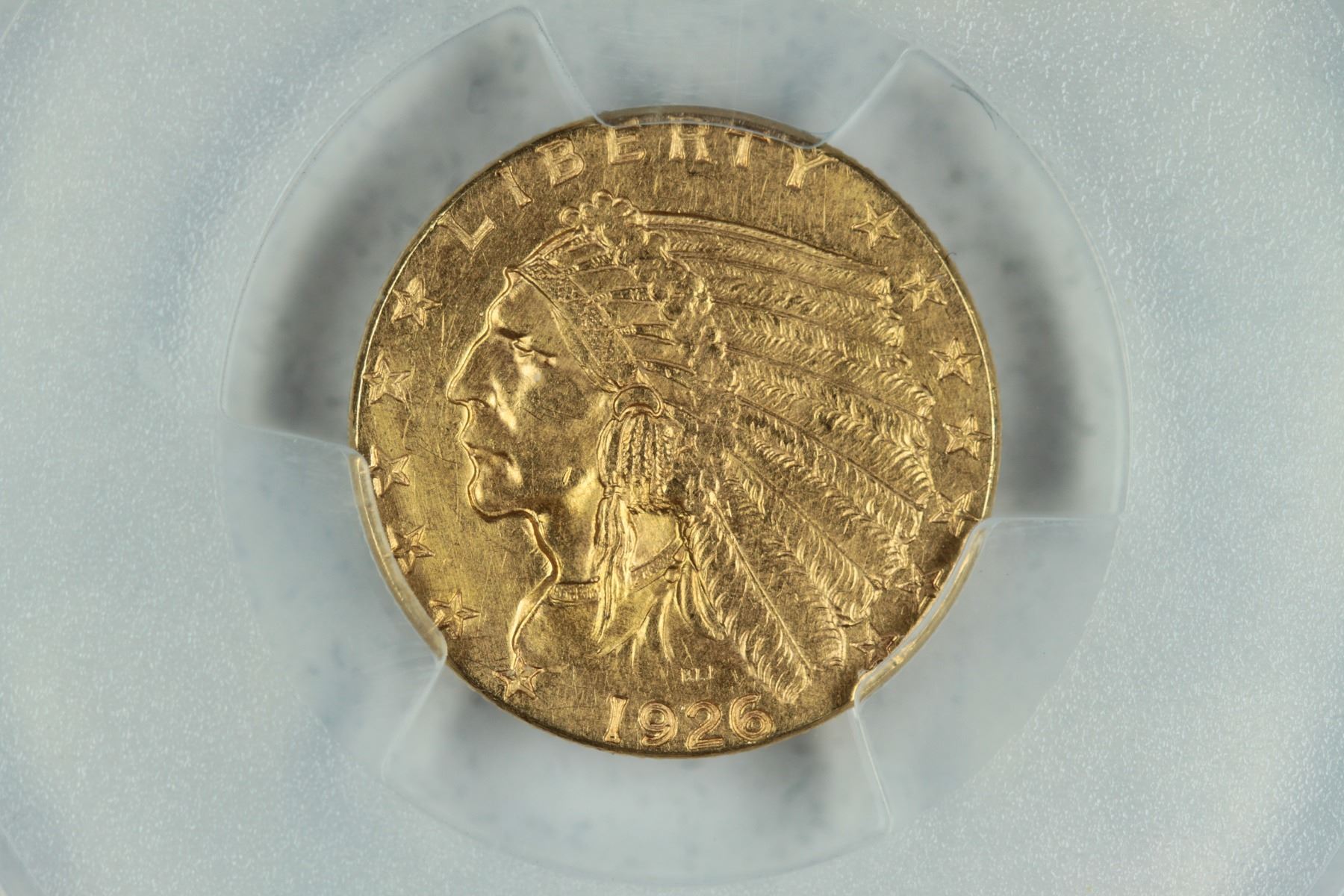 1926 $2« Indian Head gold coin, PCGS Genuine Uncirculated. Estimate: $800-900