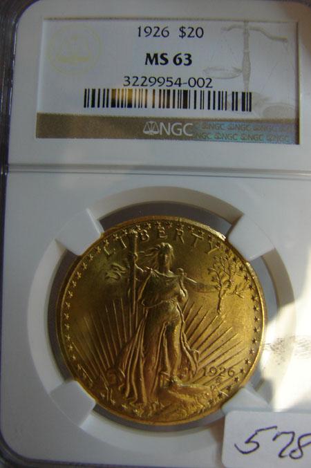 1926 $20.00 Saint Gaudens Gold Coin NGC MS63