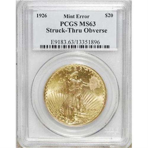 <B>1926 $20 Double Eagle--Struck-Through Obverse--MS63 PCGS.</B></I> <BR><BR><B>Coin Engraver:</B> Augustus Saint-Gaudens<BR><BR><b>Shipping:</b> Coins & Currency (<a target="_blank" href="http://www.heritageauctions.com/common/shipping.php">view shipping information</a>)