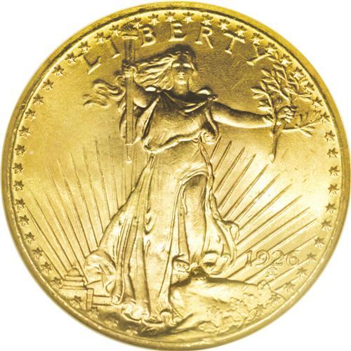 <B>1926<$20> MS67 NGC.</B></I> The 1926 Saint-Gaudens issue is very common in Mint State grades up to and including MS66, where almost 800 coins have been encapsulated by NGC and PCGS combined. Go one grade level higher, however, and the picture changes completely, as a mere seven examples have been found worthy by the two major services.<BR> It is easy to see why NGC has graded this piece as a Superb Gem. The beautiful design details have been crisply and evenly articulated throughout, and impressive luster shines from the nearly pristine surfaces. Trivial stacking marks are noted on the sun, for the sake of accuracy. The lovely coloration is a blended combination of amber, golden, and rose patina, with a bit of silver-white toning distributed over the eagle. Here is a memorable coin for the specialist who demands the finest available. Census: 4 in 67, 0 finer (8/06).
