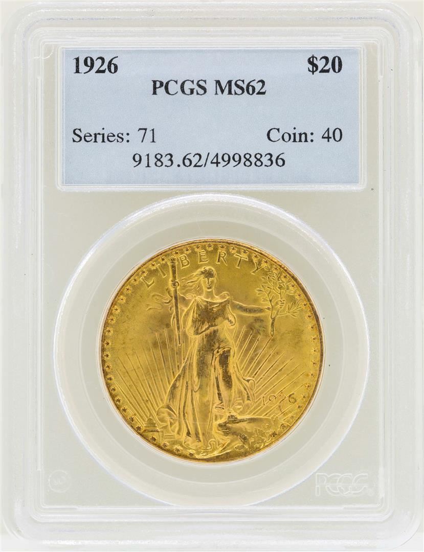 One 1926 $20 St. Gaudens Double Eagle Gold Coin PCGS MS62. PCGS Graded.