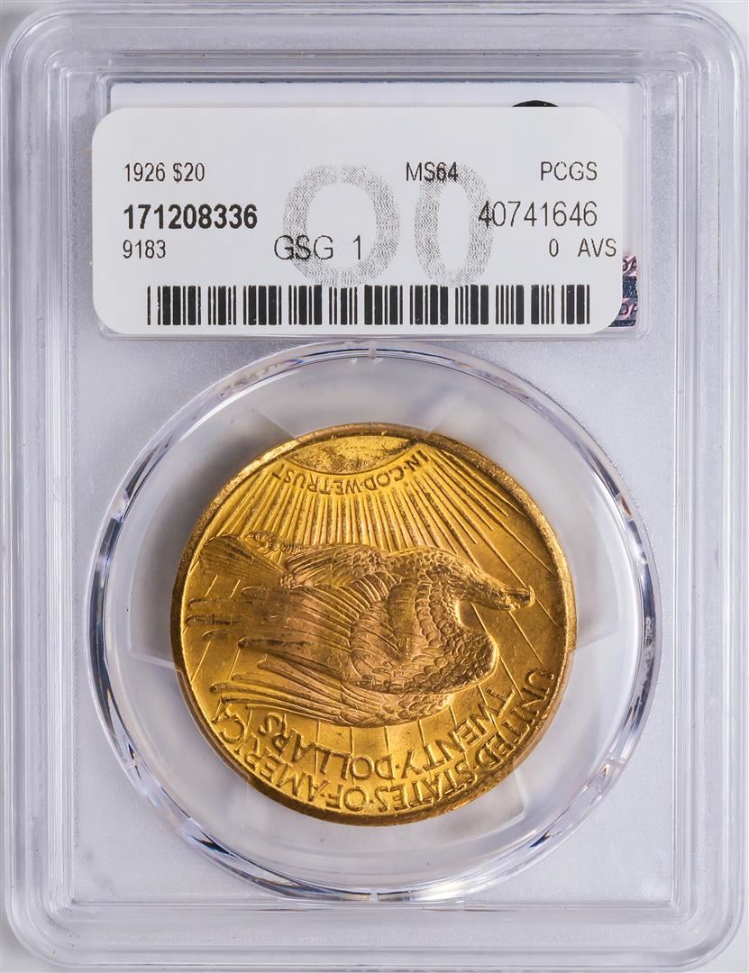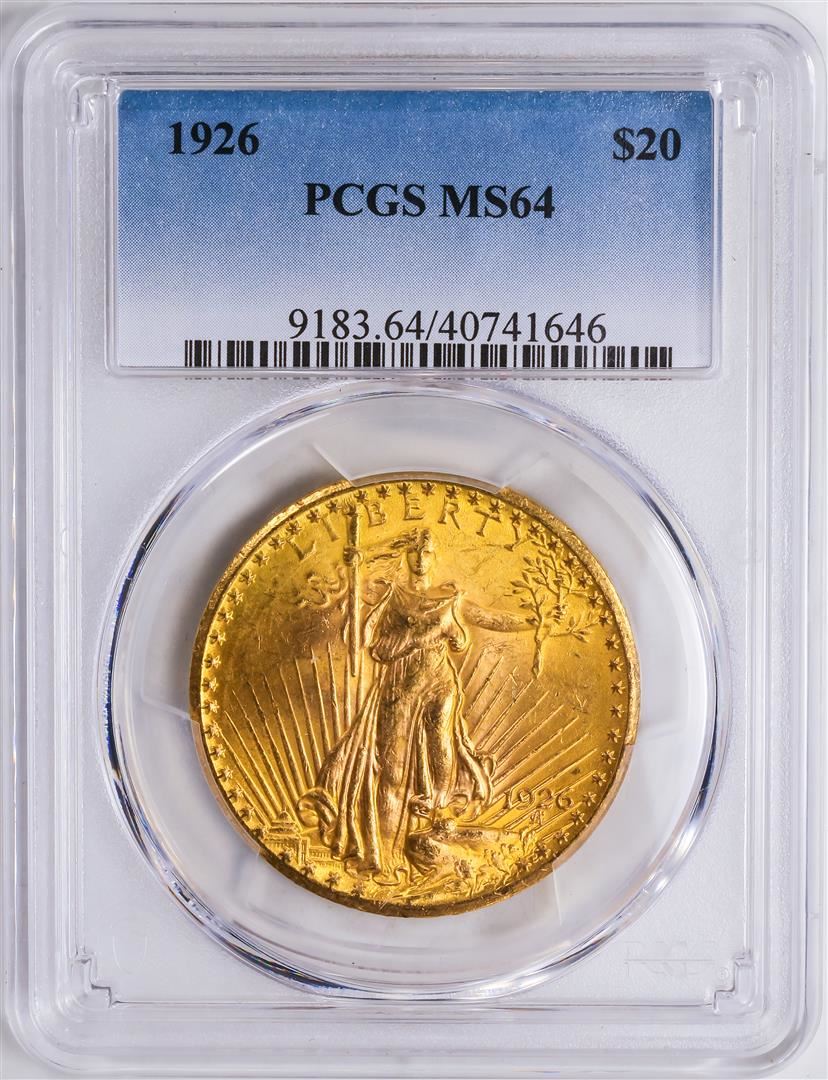 One 1926 $20 St. Gaudens Double Eagle Gold Coin PCGS MS64.