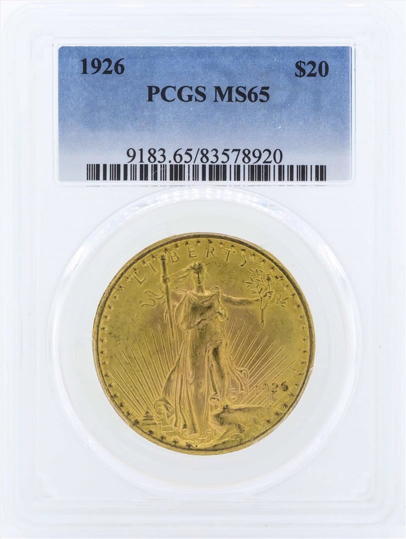 One 1926 $20 St. Gaudens Double Eagle Gold Coin PCGS MS65. PCGS Graded.