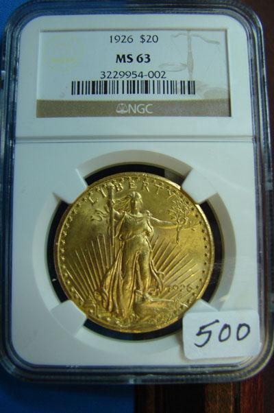 1926 $20 St. Gaudens Gold Coin NGC MS63