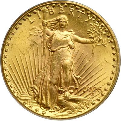 1926 $20 St. Gaudens. PCGS graded MS-64. An intensely lustrous example exhibiting delicate mint bloom colors (PCGS # 9183) .