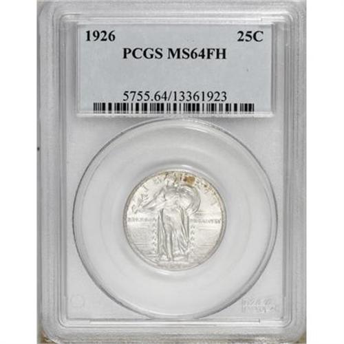 <B>1926 25C MS64 Full Head PCGS.</B></I> PCGS Population (122/95). NGC Census: (91/64). Mintage: 11,316,000. Numismedia Wsl. Price for NGC/PCGS coin in MS64: $500. (#5755)<BR><BR><B>Coin Engraver:</B> Hermon A. MacNeil<BR><BR><b>Shipping:</b> Coins & Currency (<a target="_blank" href="http://www.heritageauctions.com/common/shipping.php">view shipping information</a>)