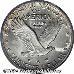 <B>1926<25C> MS65 Full Head PCGS.</B></I> Boldly struck in all areas, an unusual quality on the '26-P Quarter, with frosty, untoned centers and a delicate halo of golden color at the margins. Population: 63 in 65, 20 finer (9/04). <BR><BR><B>Important notice:</B> Heritage usually auctions material at the rate of 200-250 lots per hour. On some occasions eBay Live bid software or the Internet may not be able to keep up with the pace of the auction. We recommend placing a realistic absentee bid now as insurance to avoid disappointment. Occasionally the auctioneer may eliminate or reject an eBay Live bid, and the auctioneer may also reopen a lot after the close of the eBay live bidding (usually because we missed an audience bid), and may reject your bid even if it shows you as the winning bidder. By bidding via eBay Live, you agree that Heritage may award the lot to another bidder at its sole discretion under the circumstances described above or any other reasonable circumstances. Since eBay bids are not shown to us until we open the lot on the floor, we treat those bids just like floor bids. In most cases the floor responds before the eBay bid is presented to us, due to Internet lag time, so for consistency we have made it a policy that floor bids are always considered first over tie eBay live bids. Also please note that all Heritage lots purchased through eBay Live carry a 20% Buyer's Premium. Please make sure you read the Terms and Conditions before you bid.