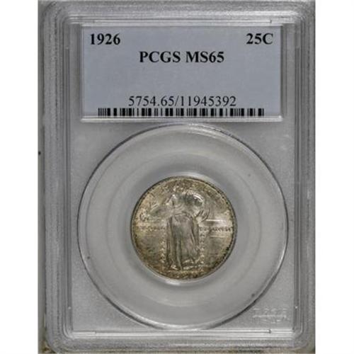 <B>1926 25C MS65 PCGS.</B></I> PCGS Population (128/31). NGC Census: (106/26). Mintage: 11,316,000. Numismedia Wsl. Price for NGC/PCGS coin in MS65: $460. (#5754)<BR><BR><B>Coin Engraver:</B> Hermon A. MacNeil<BR><BR><b>Shipping:</b> Coins & Currency (<a target="_blank" href="http://www.heritageauctions.com/common/shipping.php">view shipping information</a>)