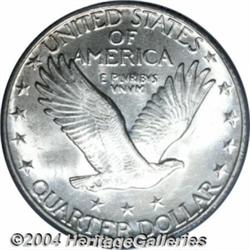 <table><tr><td><table><tr><td>1926 25C MS66 Full Head PCGS. The 1926 is certainly not the most difficult Standing Liberty quarter to locate with smooth, fully struck features. And even though MS65 Full Head specimens are occasionally available, the present Gem is one of only 16 examples to receive an MS66 Full Head designation from PCGS. Neither Liberty's head, the shield rivets, nor the eagle's breast feathers are substantially lacking in striking definition. Both sides are fully lustrous with only the faintest whisper of golden color on the obverse. Population: 16 in 66, 1 finer (2/04). <BR><BR><B>Important notice:</B> Heritage usually auctions material at the rate of 200-250 lots per hour. On some occasions eBay Live bid software or the Internet may not be able to keep up with the pace of the auction. We recommend placing a realistic absentee bid now as insurance to avoid disappointment. Occasionally the auctioneer may eliminate or reject an eBay Live bid, and the auctioneer may also reopen a lot after the close of the eBay live bidding (usually because we missed an audience bid), and may reject your bid even if it shows you as the winning bidder. By bidding via eBay Live, you agree that Heritage may award the lot to another bidder at its sole discretion under the circumstances described above or any other reasonable circumstances. Since eBay bids are not shown to us until we open the lot on the floor, we treat those bids just like floor bids. In most cases the floor responds before the eBay bid is presented to us, due to Internet lag time, so for consistency we have made it a policy that floor bids are always considered first over tie eBay live bids. Also please note that all Heritage lots purchased through eBay Live carry a 20% Buyer's Premium. Please make sure you read the Terms and Conditions before you bid. <BR><BR><B>IMPORTANT ANNOUNCEMENT ABOUT RESERVES:</B> Heritage now divulges all reserves on its web site 7 days before every auction. If you want to know whether the reserve on this lot has been met, and if not, what the reserve amount is, please visit this lot page on the HeritageCoin.com web site, or email: bid@HeritageGalleries.com </span></font></td></tr></table></td></tr></table>