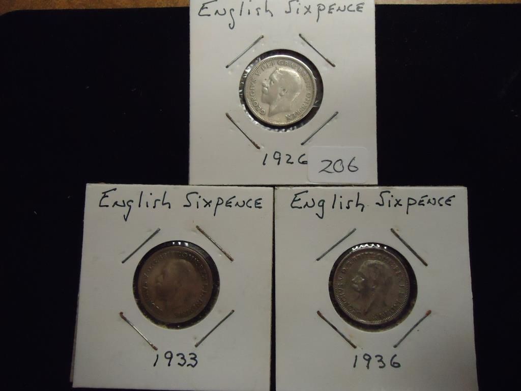 1926,33 & 36 GREAT BRITAIN SILVER 6 PENCE