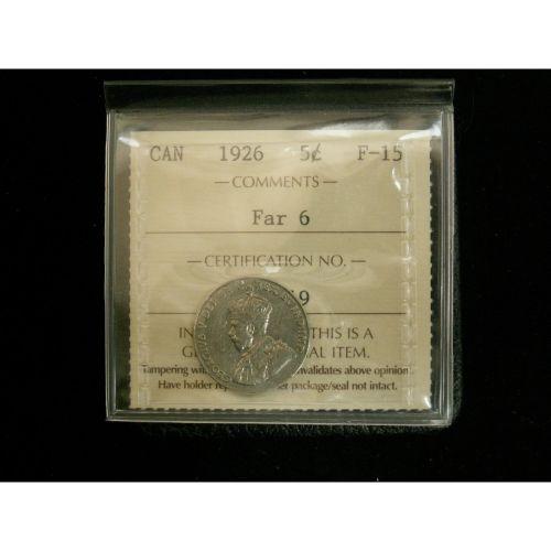 1926 5¢ Far 6 ICCS F15, nice problem free example