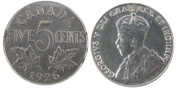 1926 5¢ Far 6 ICCS VF30. Designated as harshly cleaned with planchet flaw. Looks good though.