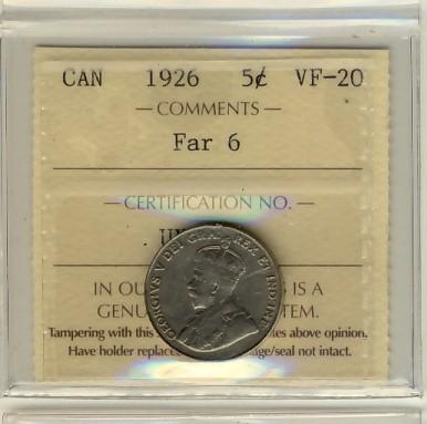 1926 5¢ Far ICCS VF20.