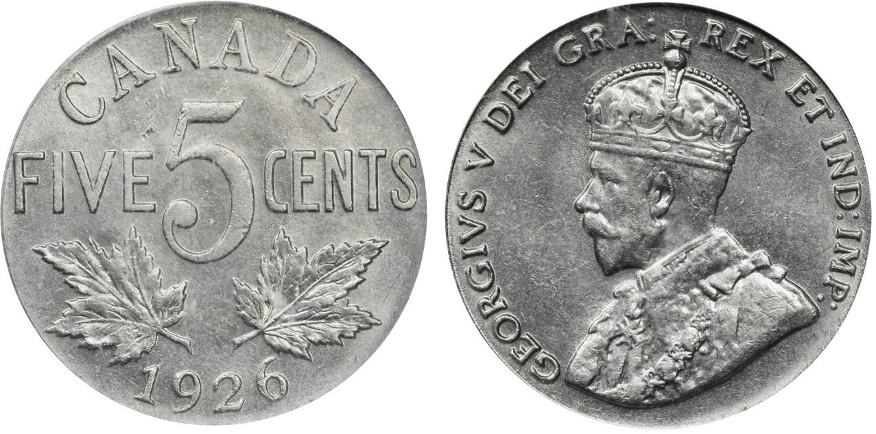 1926 5¢ "Near 6" PCGS Choice Mint State-63 Lustrous. A better date.